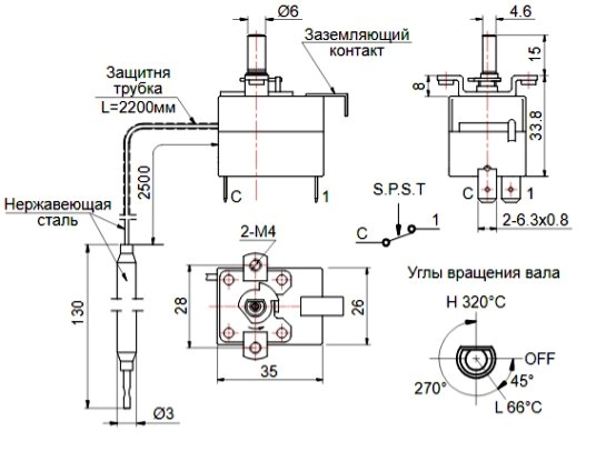 термостат на духовку 66-320гр 25A WKC-320S1 16A/250В АС 010.002.143 — описание:З/Ч для электропечей