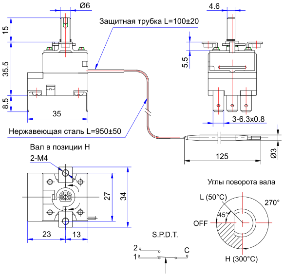 Термостат капиллярный WZA-300E 16A/250В АС 50..300`С 010.002.120 — описание:
