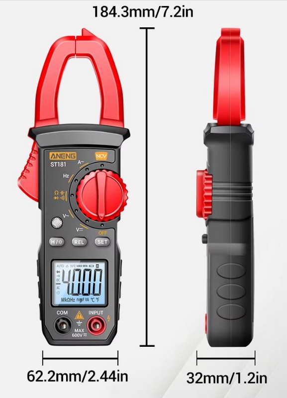 ANENG ST181 Цифровой токоизмерительный клещи постоянного/переменного тока 4000 отсчетов, мультиметр, амперметр, тестер напряжения, автомобильный амперметр, измеряет: Гц, емкость, NCV , сопротивления